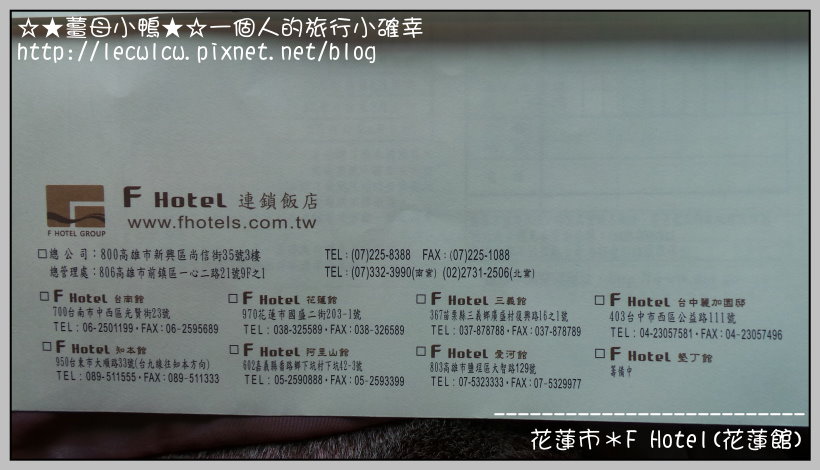 住宿地點:花蓮市 F Hotel