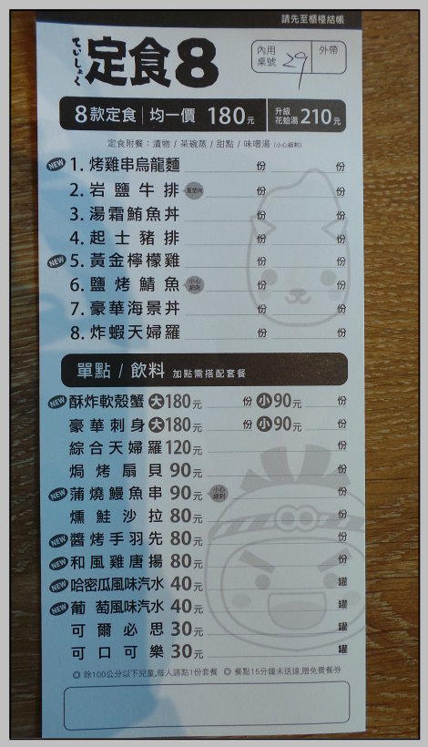 小鴨這次選擇的是"定食8",